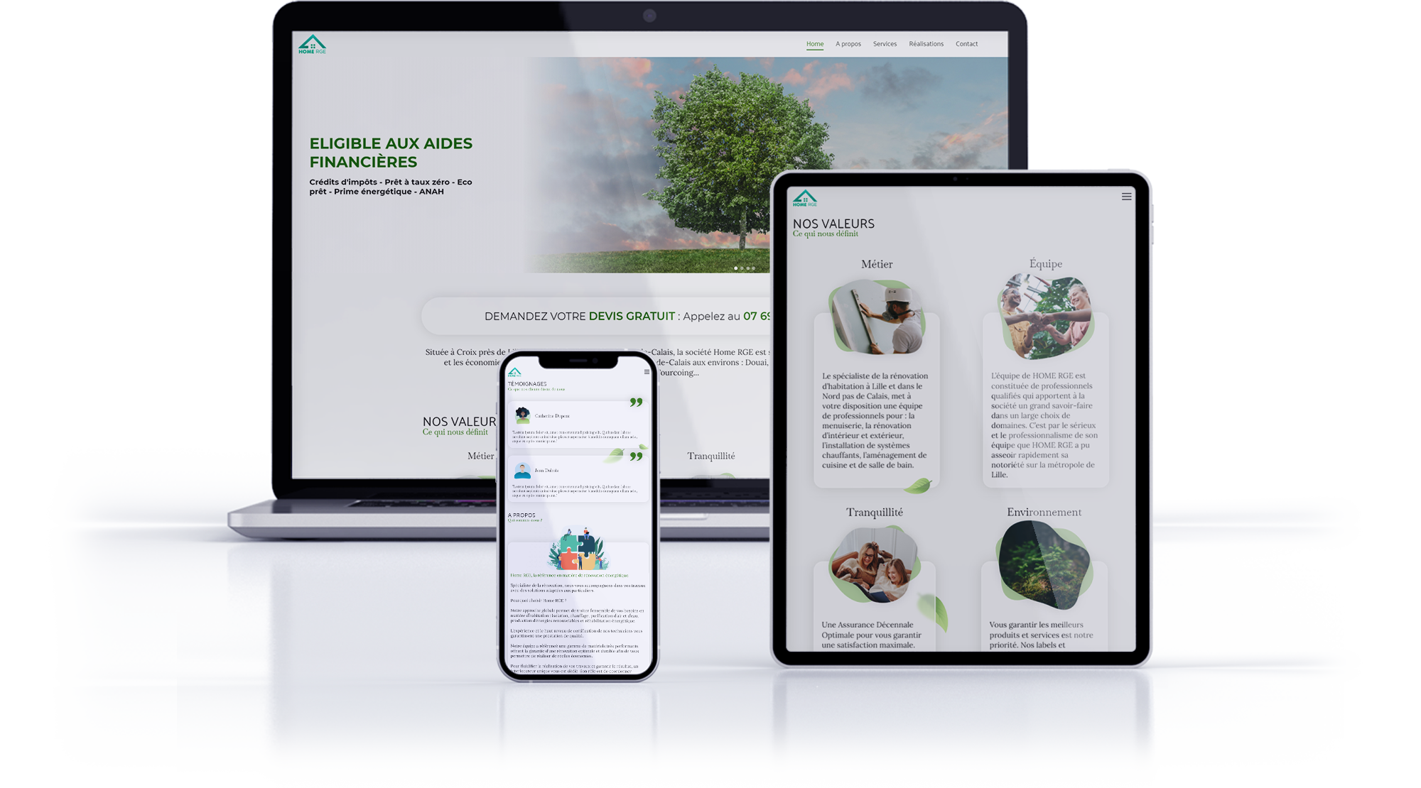 HomeRGE est une entreprise de rénovation de maisons. La rénovation étant synonyme de renouveau et de changement, le site devait refléter ces aspects en le rendant plus moderne, plus tendance. Le nouveau design est donc épuré et fluide, les informations importantes claires et facilement accessibles. Un autre point important du projet était de rendre le site accessible sur tout type de plateforme (mobiles, tablettes, ordinateurs), un aspect primordial qui manquait à leur site.